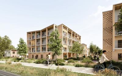 L’habitat mixe des appartements dans de petits collectifs à des maisons de ville et des villas, le tout relié par des venelles piétonnes arborées.